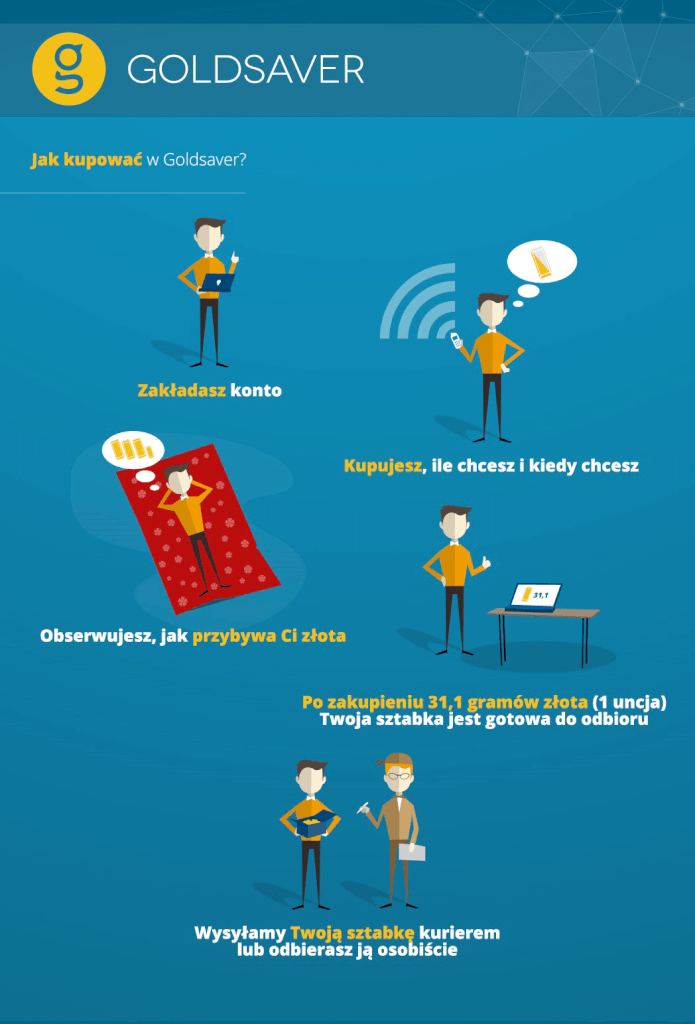 Firma goldsaver.pl umożliwia systematyczne oszczędzanie – kupujesz i gromadzisz na swoim koncie fizyczne złoto. Nie certyfikaty, czy wirtualny zapis. Tylko prawdziwe złoto.