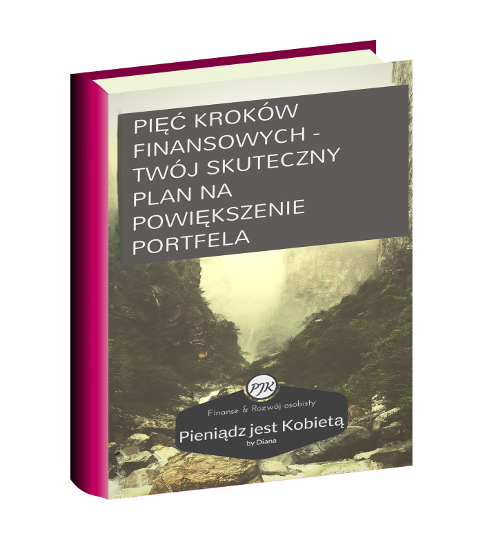 Chciałam stworzyć ebooka, który będzie kwintesencją mojego bloga, ale nie będzie jego dokładną kopią. Tak powstało „Pięć Kroków Finansowych – Twój skuteczny plan na powiększenie portfela”. W poradniku znajdziesz moją wiedzę, którą poznałam od ekspertów, popartą faktami. Dzielę się tam także moimi doświadczeniami i informacjami ze świata finansów. Znajdziesz w nim plan na odpowiednie kroki finansowe, które są realne i osiągalne dla wszystkich kobiet.
